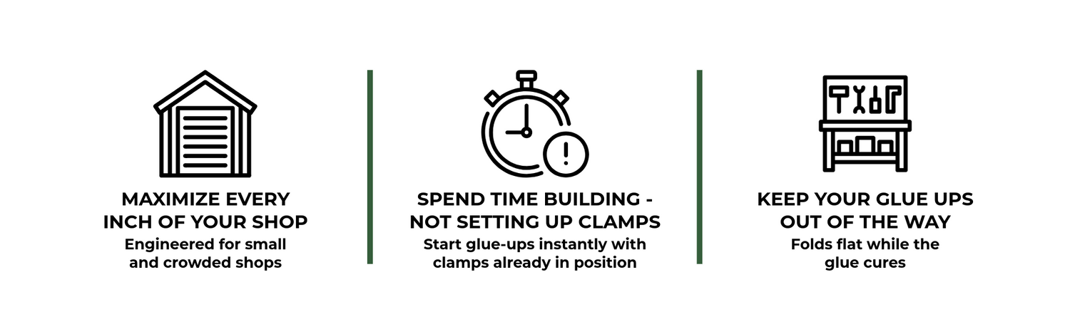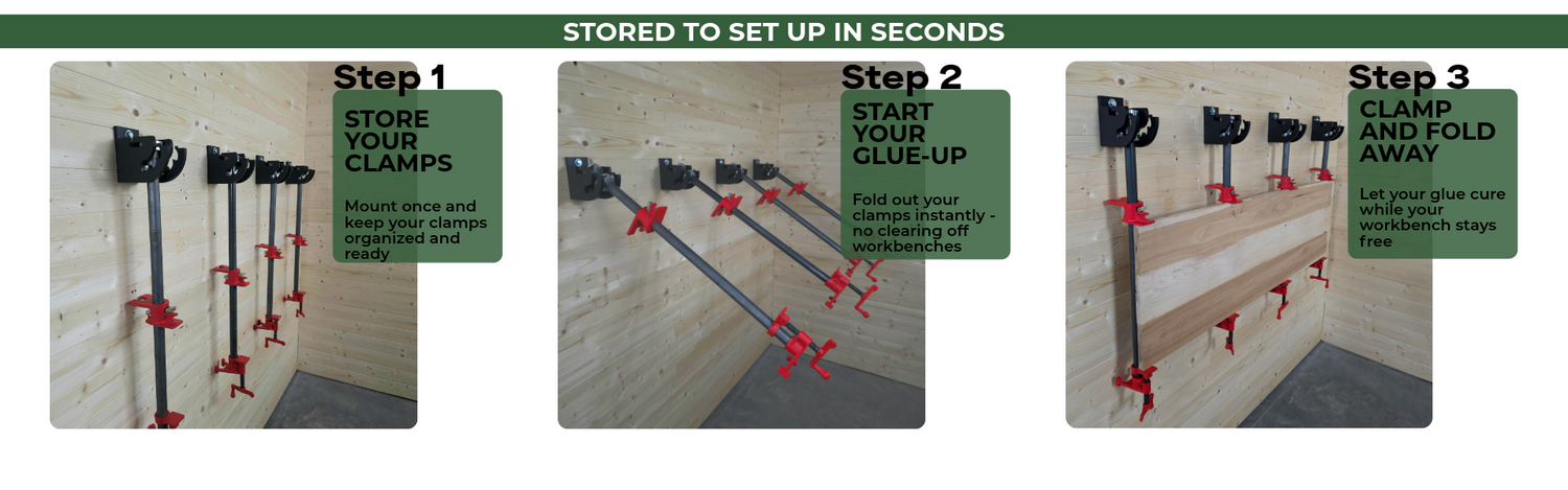 — GayleClamp Companion makes glue ups so easy! Being able to glue up panels and fold down out of the way is great for continuing use of my space...I highly recommend the Clamp Companion for your glue station.